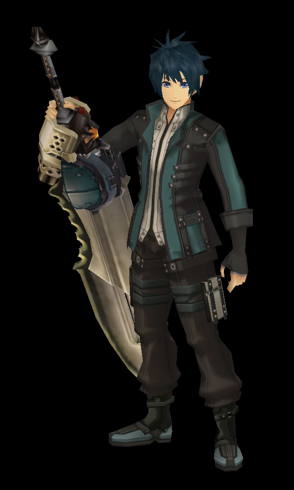 Ryo is an 18-year-old young adult with dark blue, short hair and blue eyes. He wears a blue Fenrir Formal Uniform that consists a blue jacket over a white shirt, a black glove on his left hand, some black pants with two white pockets strapped on both of his thighs, and a pair of dark grey boots with blue accents.